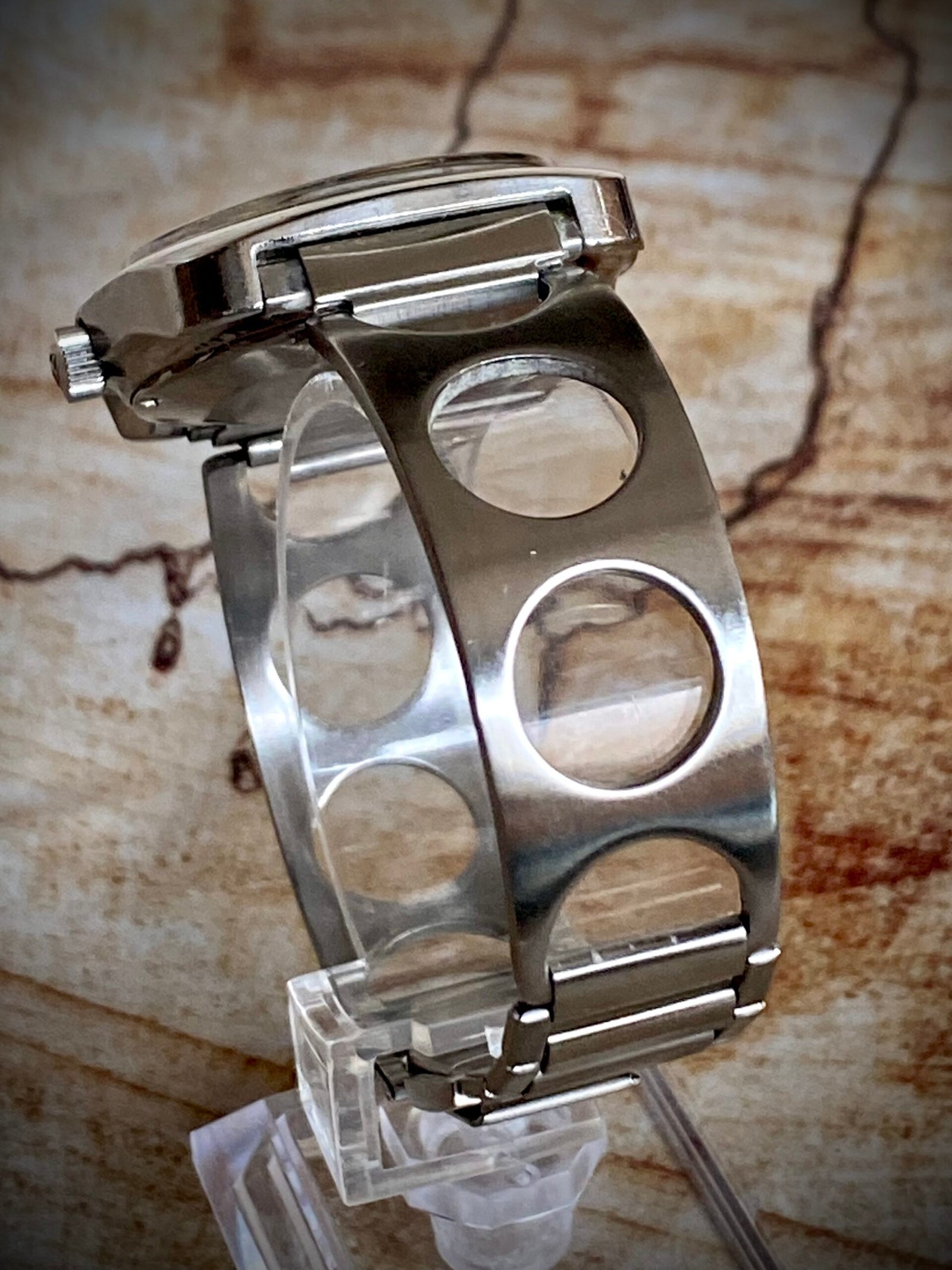 En 1970, Tissot dio un paso revolucionario al presentar el Tissot Astrolon, el primer reloj del mundo fabricado con materiales sintéticos . La caja, el movimiento y el cristal estaban hechos de materiales plásticos y compuestos, lo que permitía producir relojes robustos, precisos y a precios muy competitivos . El Astrolon demostró que Tissot no temía experimentar con nuevos materiales y procesos industriales .